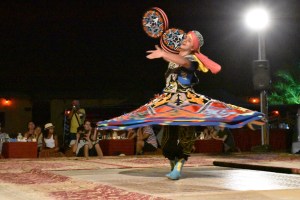 Following the camel ride we entered the safari camp and had a wonderful barbecue dinner including the most delicious dates and exotic appetizers. Once our bellies were full the show started and we were entertained with a dizzying performance by a male dancer that spun for about thirty minutes. Normally this would have been a belly dancing performance but since it was during Holy Ramadan, belly dancing was not permitted. The show was great although I would have of course preferred the belly dancers, and then we were once again back in our vehicles and off to the ship.