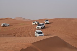 We decided to do this excursion on our own and our driver met us promptly just outside the cruise terminal. This was a small private tour of just six of us so after picking up our four vehicle mates from a couple of Dubai’s finest hotels we were off down the highway and into the desert wilderness. It took about an hour for us to reach a meeting point of about ten other vehicles, Toyota Land Cruisers, where we took a short break while the drivers started letting air out of the tires. This would give our vehicles more traction as we tackled the fabulous red sand dunes that lay out as far as the eye could see.